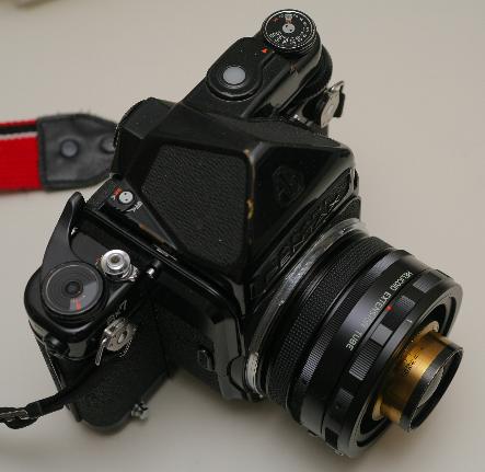 太いので、ペンタ67でちょうどいいバランスです。レンズの後ろにぴったりとマウントを取り付けて、ヘリコイドチューブをかませると、ちょうど無限遠が出ます。