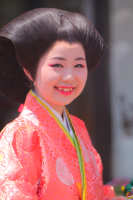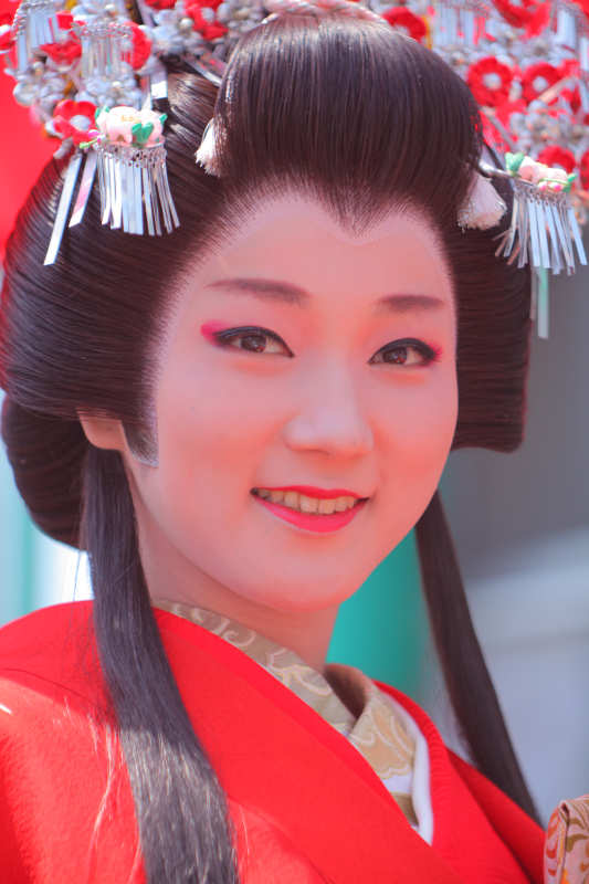 一昨年、去年に続いて三回目の草津宿場まつりを見学。豪華絢爛時代行列は大変撮影しやすいです。歩いているところの写真はほとんどなく、行列が止まった時に、御姫様にまずレンズの由来を説明し、賛同を得た上で撮影しています。要するに動いているとピント合わせができないのです。行列の停止時間が割と長く、喜んで撮影に応じて頂けるので助かります。