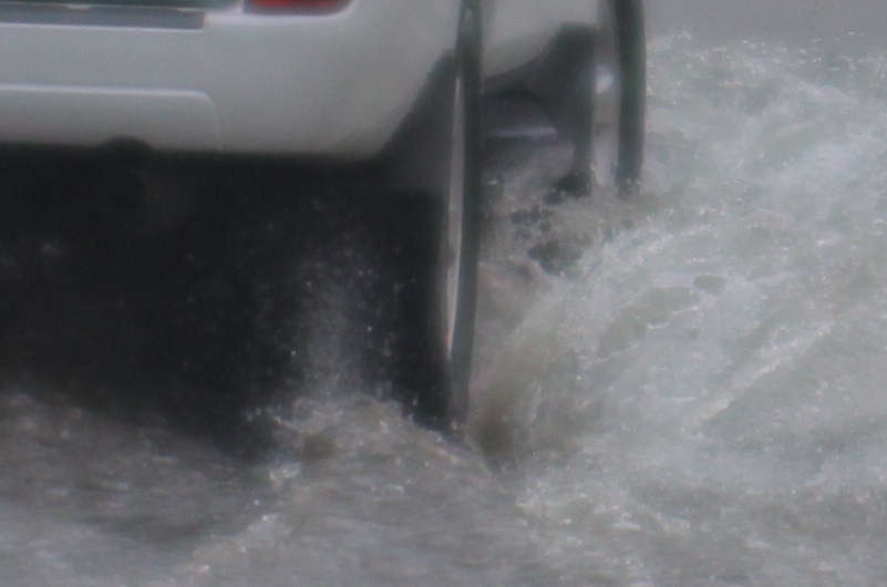 冠水と言っても、大きな水溜り程度。子供は平気です。