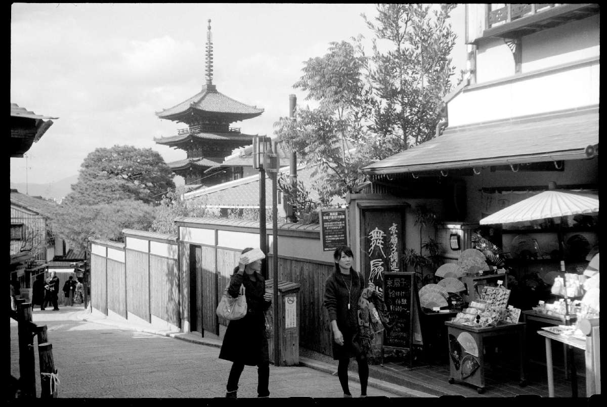 秋の観光シーズン真っ盛りの京都。撮影日和。今年の紅葉はよくありませんが、モノクロフィルムなので特に問題なし。