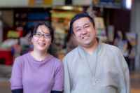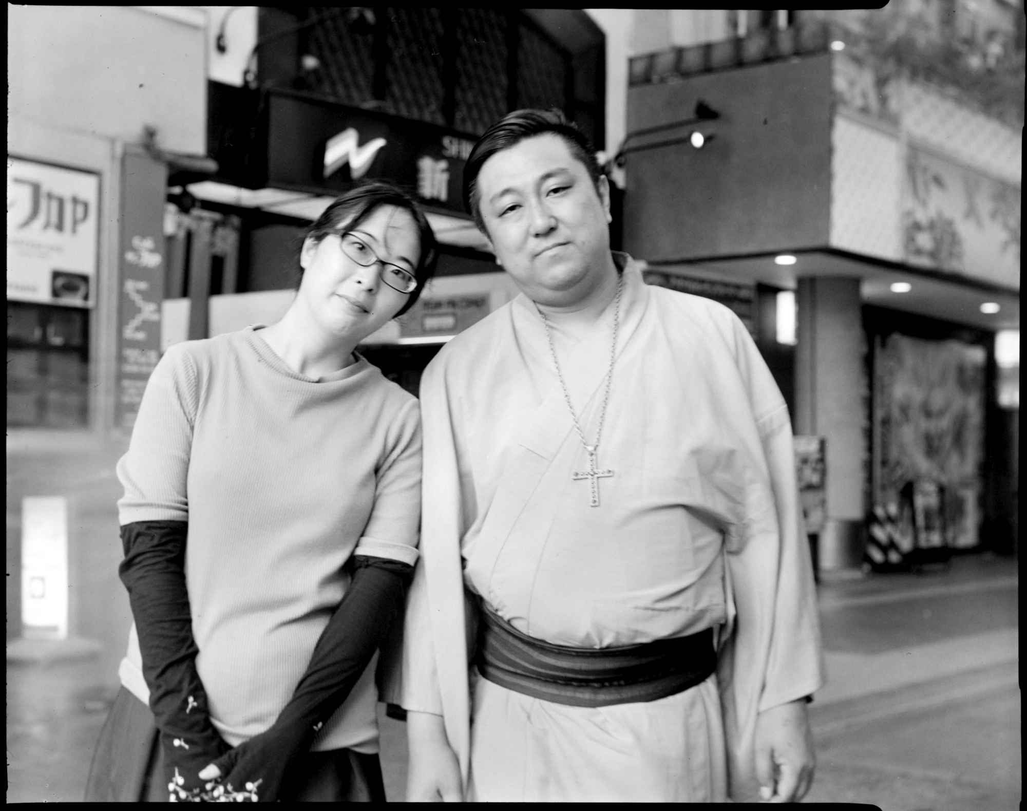 ちらしを持っているのは福岡のアイドルユニット白金アイドル塾の皆さん。