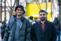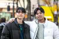 原宿では世界各地の観光客が買い物を楽しんでいます。大きな紙袋を抱えて撮影に立ち寄る人が多いです。