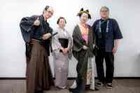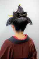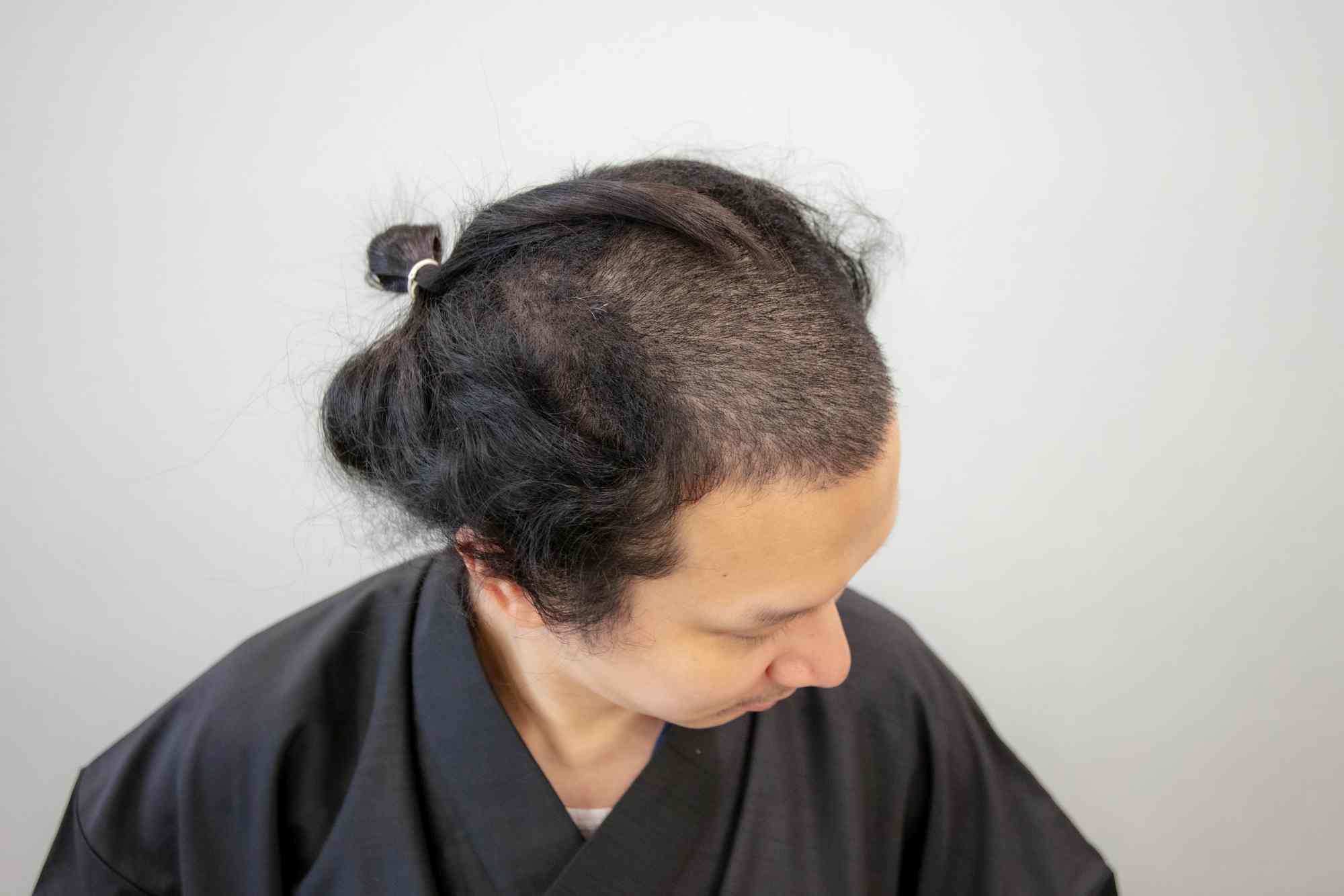 いつもモデルとして撮影に協力して頂いている布留川さんが発起人兼貝髷(ばいまげ)と立兵庫(たてひょうご)のモデル。まげメガネさんが侍髷と浪人髷のモデル。