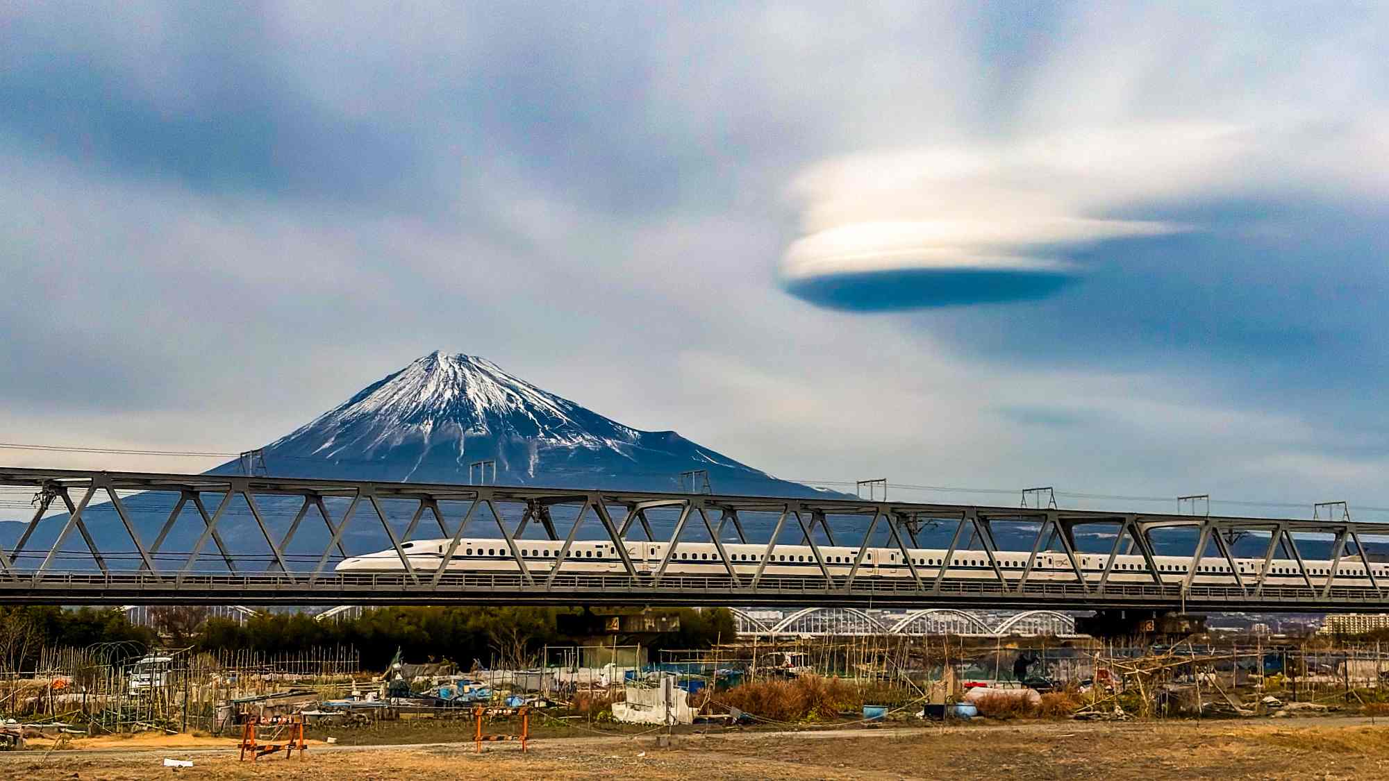 2026.2.10 Mt. Fuji 富士山 iPhone 17, Canon EOS 5Ds 富士山の撮影場所探し。JR富士川駅から徒歩一時間くらいのところです。 富士山の南側の風の流れは複雑で、上空の北風を地上付近の南風がぶつかって奇妙な雲が出ているようです。 https://www.facebook.com/share/v/1DviPApBe6/